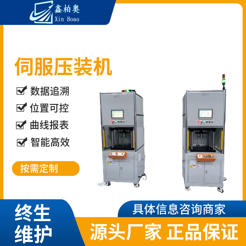 精密數控伺服壓力機由伺服電機推動絲桿,由PLC控制、觸摸屏顯示、位移傳感器和測力傳感器參與控制來實施精密壓裝作業。